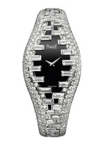 Piaget is one of just a handful of companies in the world with expertise so ubiquitous that it can offer a wealth of technological advances, complicated technical movements and high-jeweled accomplishments. So I guess you can see why I am not at all surprised by the stunning new creations unveiled to demonstrate the brand’s expertise in high-jewelry watchmaking. Part of the Limelight collection, the remarkable new models include a feminine “secret” watch – wherein the watch dial is hidden from view until one presses a button that operates a mechanism to reveal the watch case. The Cascade Inspiration Secret cuff features alternating lines of baguette- and brilliant-cut diamonds, each ending with a pear-cut diamond. The magnificent feat of 18-karat white gold, and 43 carats of diamonds houses the 56P Piaget quartz movement. The cuff watch took Piaget’s watchmakers 950 hours to develop. It took the brand’s gemsetters 110 hours of painstaking work to masterfully set the more than 400 diamonds.