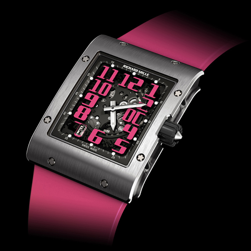 Meanwhile, Richard Mille is feting the grand opening of the OC Concept Store at 655 Madison (so decadent it has its own caviar bar!) with a 10-piece limited edition of the RM 016 OC Concept in white gold ($70,000). It’s Mille’s thinnest watch yet, just 8.25 mm, with a skeletonized dial, hot pink numerals and the OC Concept store logo at 3:00 and date aperture at 7:00.