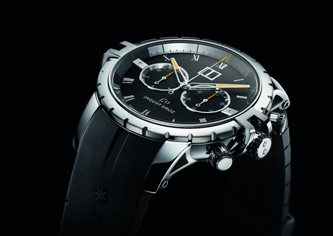 Conceived based on the Grande Second SW – a watch with an extra-large second indication – the new SW Chrono has finally made its way to stores around the world. The bold beauty, introduced in 2010, is a powerful timepiece with decidedly masculine appeal and contemporary materials. It features a dial, crown and pushpieces accented with rubber. The mechanical JD 6885-S self-winding movement with ruthenium treatment is housed in a 45mm steel case accented with a three-dimensional flange and a dial of orange Super-Luminova-tipped hands for extremely legible reading. The watch offers column-wheel chronograph, white gold oscillating weight, 40 hours of power reserve and is water resistant to 50 meters. At $16,000 retail, it is a great look for this brand.