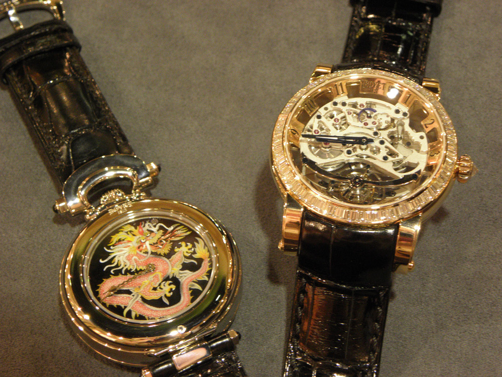 Bovet Dragon and Recital 0dragon on it (the year 2012 is the Chinese Year of the Dragon). With the flip of the strap, the watch is reversible. It retails for just under $300,000. Also important from Bovet is the Recital 0 — a skeletonized timepiece with a micro-sandblasted finish that looks white to the eye. This $290,000 watch is meticulously finished and features a diamond-set case. Each of these watches is an amazing feat of watchmaking technology inside and stunning art on the outside.
