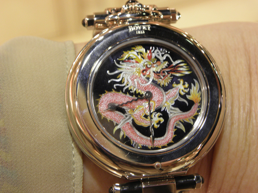 Bovet DragonAt the 8th annual Doha Jewelry and Watch Exhibition in Qatar this past week, men’s complicated watches – especially tourbillons – stole the limelight. These were followed by limited edition pieces and high-tech, high-mech complexities from some of the independents such as Hautlence, Ladoire and Richard Mille. Naturally, being the Middle East market, watches adorned with some extra diamonds and gemstones faired strongly, as well, so those with diamond bezels and cases had added allure.