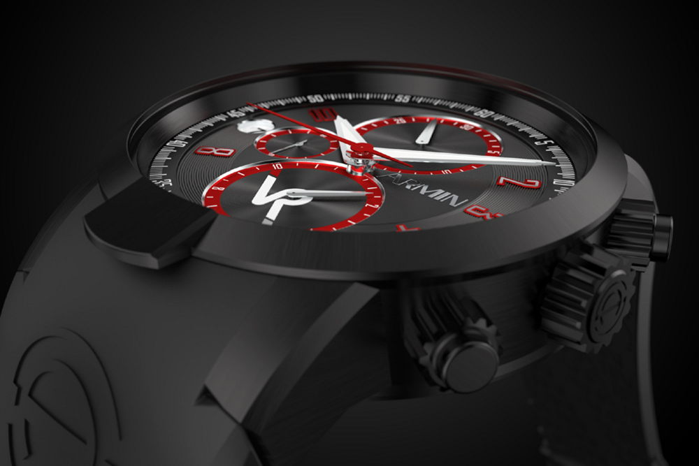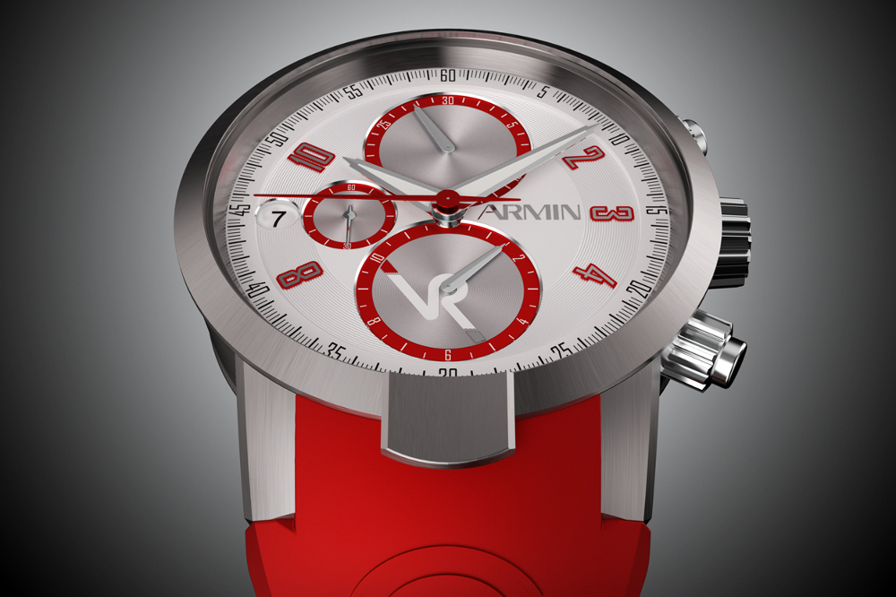 with its bright racing red and white dial accents. The red version is a matte titanium case, white dial with bright red accents and a matching bright red rubber racing strap. Alternatively, a high-tech leather strap is available. Just 400 pieces of this new Armin Strom watch will be built.