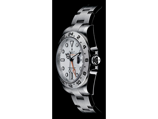 Here at BaselWorld, Rolex unveils the new Oyster Perpetual Explorer II, enlarged from 40 to 42mm and housing the new calibre 3187 designed and manufactured by Rolex. Crafted in a 904L stainless steel superalloy, polished and satin finished, the watch features a fixed bezel, winding crown, TWINLOCK double waterproof system, sapphire crystal with a scratch-resistant sapphire CYCLOPS lens (2.5 ×) over the date and is water-resistant to 330 feet.