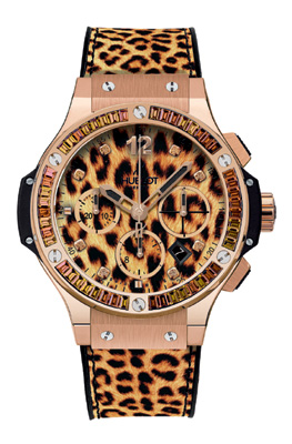 Hublot isn’t the first company to bring out a leopard watch. No, we know a handful of other brands have done it before … but what makes Hublot’s newest Big Bang Leopard so enticing is its touches of sexy, ultra-feminine glamour such as the leopard print denim strap stitched onto black rubber for a softer feel and chic appeal. The dial, too with its leopard print look is so realistic. The fact that it is accented with eigth yellow diamonds doesn’t hurt.