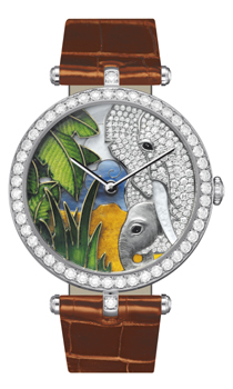 Just a few months ago, Van Cleef & Arpels wowed the world with its unveiling of incredible objects d’ art in the high-jewelry collection of timepieces inspired by the Jules Verne book Les Voyages Extraordinaires. The watches mime a journey in a balloon around the world, and thus certain dials depict animals and sights one would see in different continents.