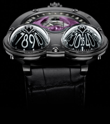 Rare, unusual, and top-of-the-line mechanics – that about sums it up when it comes to creations from MB&F, and the newest extension of the HM3 Frog – the HM3 Frog Zr is no exception. Wowing us with the colors at first glance – the case is black PVD zirconium with a purple 22-karat gold rotor — the HM3 Frog Zr is crafted of amazing materials and is yet another of MB&F’s achievements in its efforts to bring a bit of whimsy to haute horlogerie.