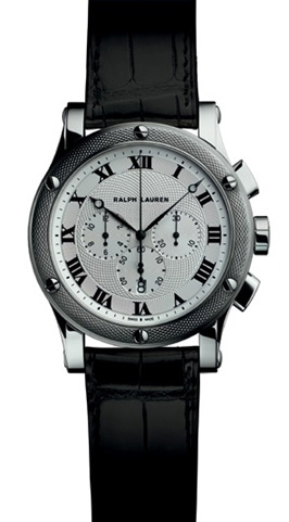 This newest Sporting Chronograph Guilloche’ watch is an extremely appealing 39mm stainless steel cased watch that features a hand-guided guilloche’d design carried through the entire watch bezel – an amazing work that is rarely seen in the watch industry. The quality, naturally, is unsurpassed, but the look is eye-catching –vintage yet modern. The watch houses the self-winding Manufacture movement RL750 made by Jaeger-LeCoultre for Ralph Lauren with hours, minutes, seconds and chronograph functions, and is finished with a black alligator strap. At a cool $7,300, this watch is a definite must-have for those who appreciate the finer timepieces.