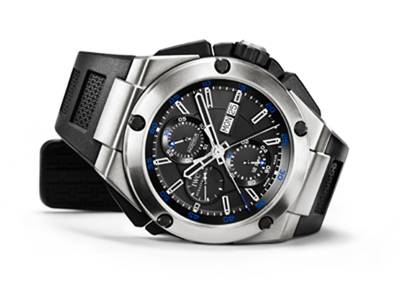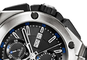 mechanism, as well as date, and day display, small hacking seconds and black rubber-coated pushbuttons and crown protector. The 29 jewel movement beats at 28,800 vibrations per hour. The rugged piece is equipped with anti-reflective sapphire crystal, rubber straps, black titanium screw-in crown and is water resistant to 12 bar. Even better – it retails for $12,700.