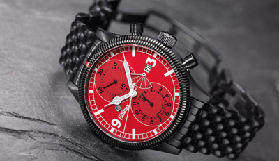 German watchmaking has come so far and Tutima is one of those Glashutte-based brands that is making great strides with its technology and craftsmanship. Long known as a strong aviation brand, Tutima brings style and function together with legendary appeal. This Grand Classic Black Chronograph PR from Tutima is one of the most alluring pieces on the market and utilizes cutting-edge technology. The case and bracelet have a black coating that is largely resistant to shock and scratches. The stainless steel actually undergoes a process to harden it far below the surface layer. It is then given an extra coating of ultra hard PVD (physical vapor deposition) as extra protection. The watch houses the well –known and precise Swiss self-winding Valjoux 7750 movement. The chronograph offers 12-hur and 30-miute totalizers and center second counter. Retailing for $4,700, this watch with its bright red dial is a definitely eye catcher.