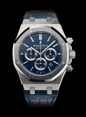 Retaining the collection’s eight hexagonal screws in polished white gold, the bezel of the Limited Edition Leo Messi Royal Oak is crafted in the alluring blue/gray of tantalum (a material with very strong resistance to corrosion and high density – about twice as heavy as steel – that is particularly difficult to machine and polish).